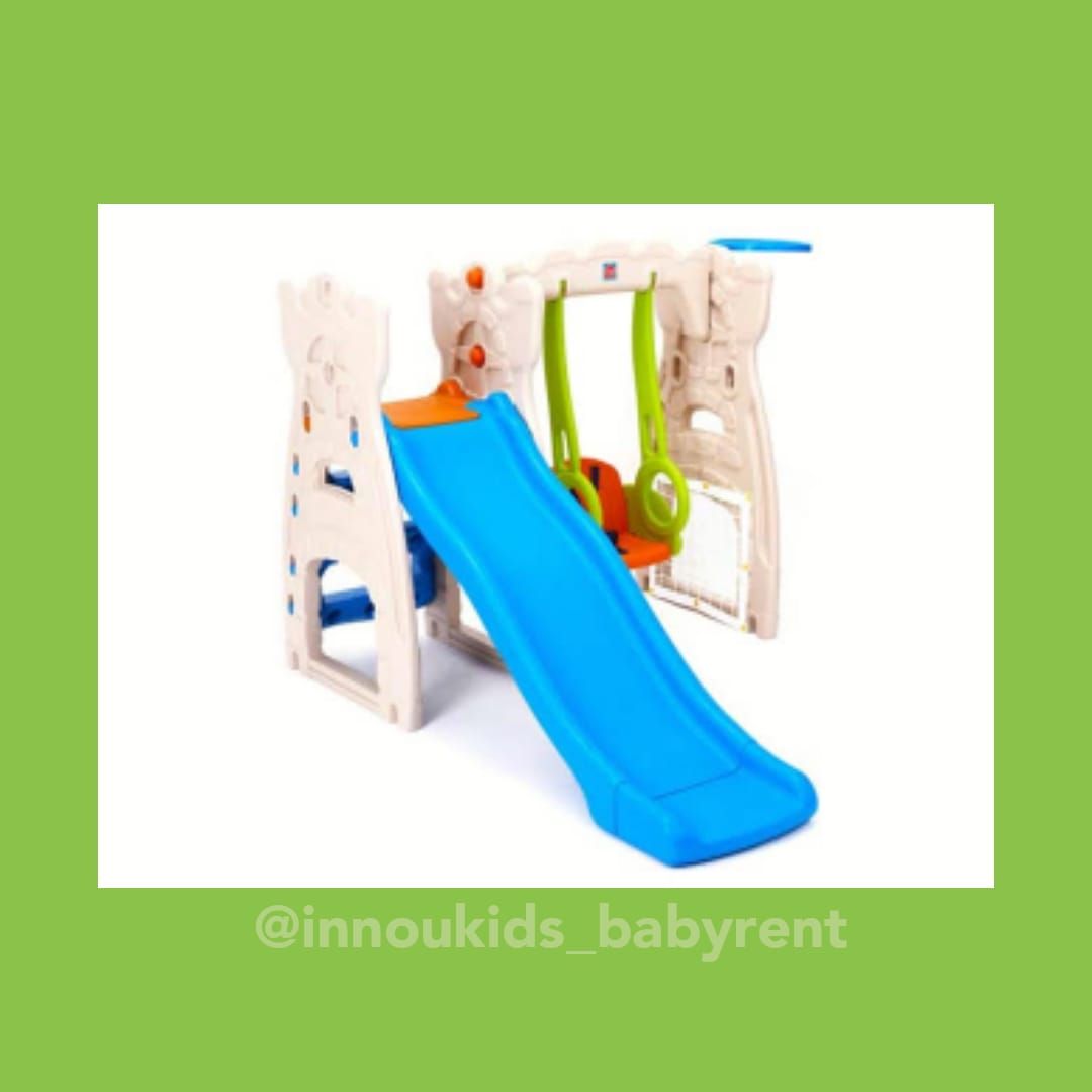 Scramble N Slide Play Centre merupakan paket mainan lengkap dengan aktivitas untuk meluncur, merangkak, memanjat, ayunan, bermain bola kaki & bola basket.