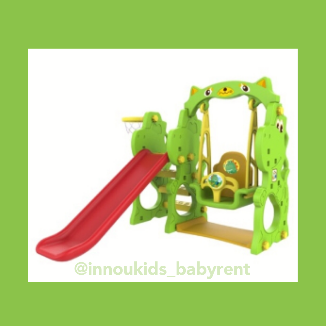 Ini adalah mainan perosotan dan ayunan yang dilengkapi ring basket, sempurna untuk menemani waktu bermain buah hati anda.
