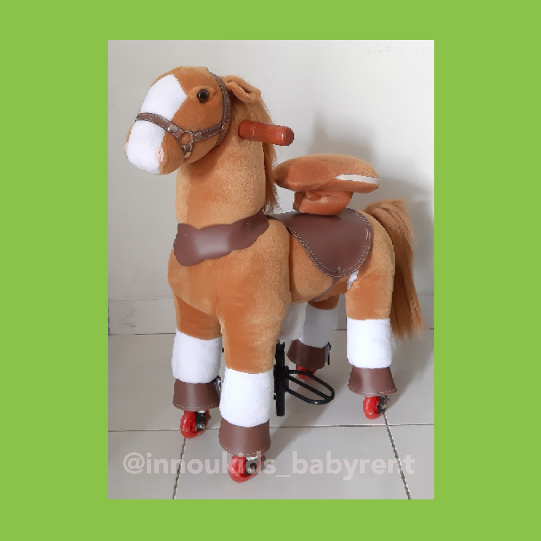 Mainan kuda kudaan untuk anak mulai 3-7 tahun dengan maks berat 25 kg dan maks tinggi 120 cm.