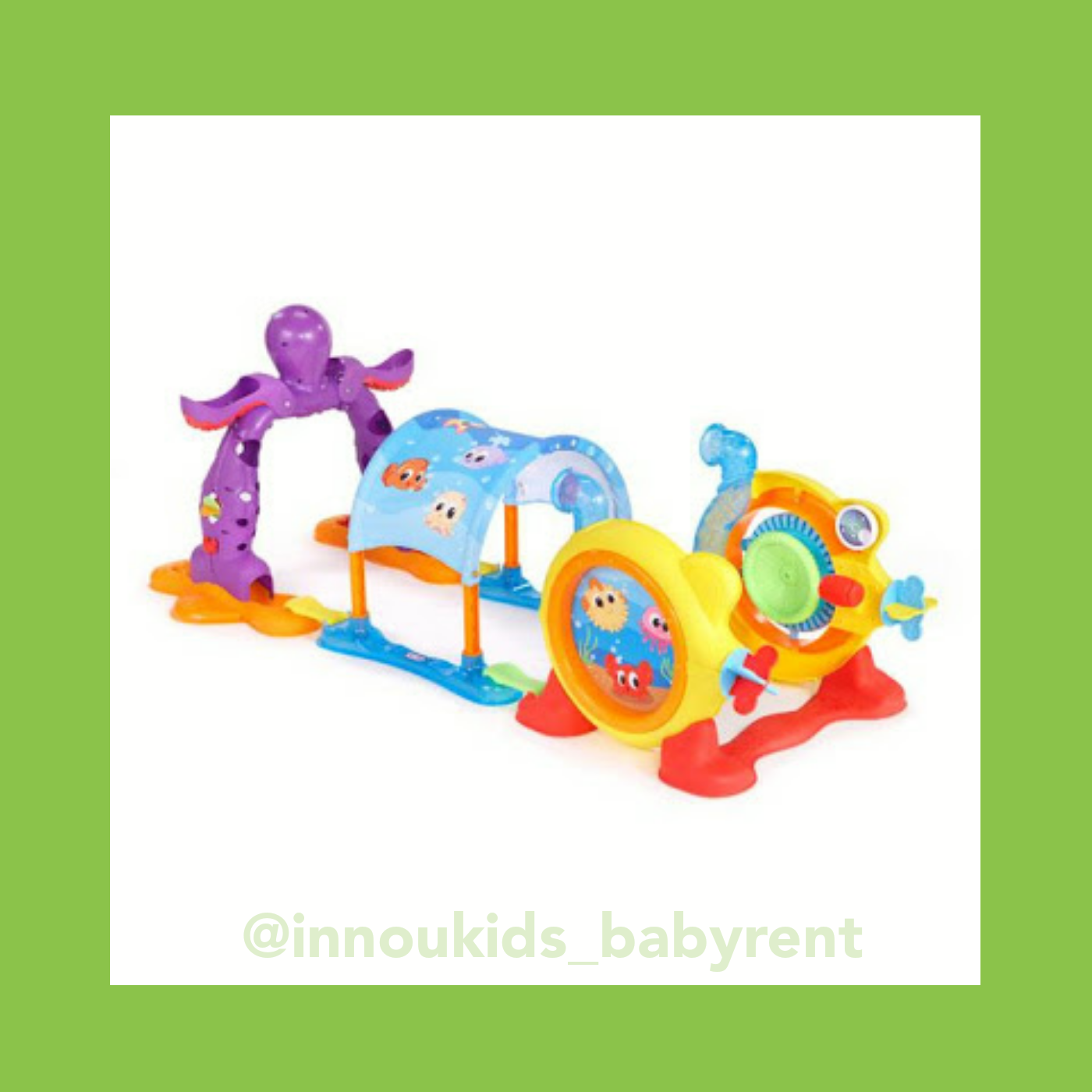 Little Tikes Lil' Ocean Explorer 3-in-1 Adventure Course! Mainan ini oke banget buat jadi stimulus motorik anak dan melatih anak duduk, merangkak, berdiri, dan berjalan dengan berbagai macam aktivitas yang bisa dilakukan di dalamnya. Totalnya bisa lebih dari 15 aktivitas. Contohnya melontarkan bola, membunyikan lonceng, dan lain-lain. Asiknya lagi, 1 set terdiri dari 3 bagian yang bisa dicopot masing-masing. Jadi kalau space rumahnya kecil, bisa dipisah-pisah. Terdapat 4 bola.
