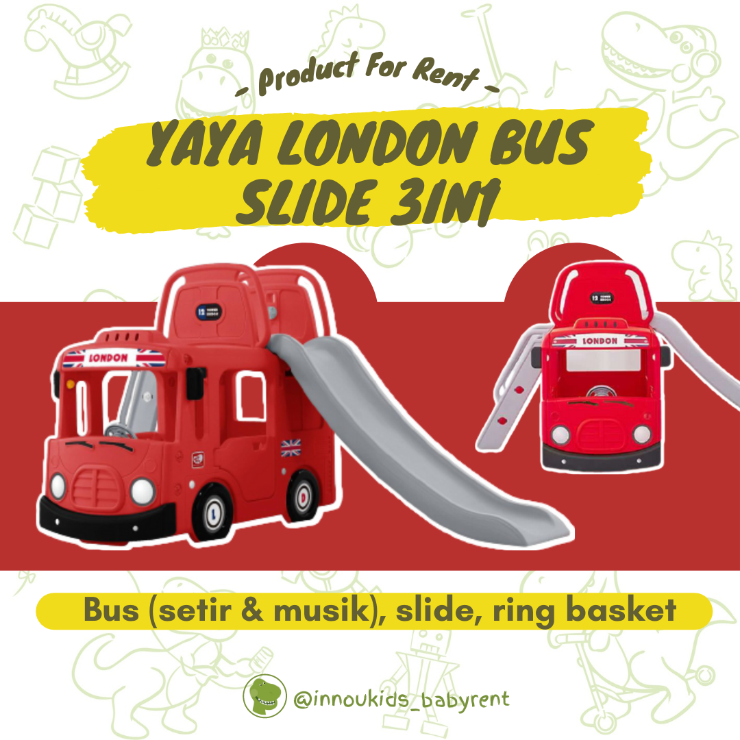 Mainan perosotan dan bus untuk pretend play yang super seru. Terdiri dari ruang bermain, ada setiran dengan lagu, perosotan, dan ring basket. Ideal dimainkan untuk anak usia 2 tahun keatas hingga maksimal BB 20 kg