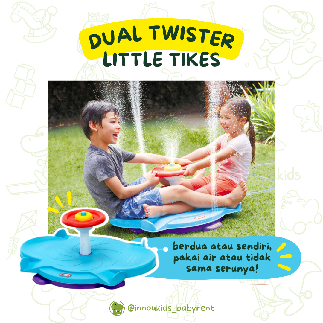 Mainan super seru anti mainstream! Bisa berputar-putar seperti di taman bermain dan mengeluarkan air jika disambung selang air. Bisa dimainkan indoor atau outdoor, berdua ataupun sendiri.